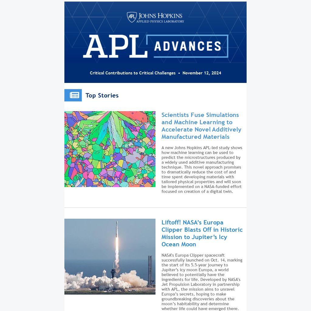 APL’s Concept Design and Realization Branch offers an array of engineering, design and fabrication capabilities that support the Laboratory’s mission and broad sponsored work. This issue, the final in a series of two, further highlights APL’s contributions in hardware design, mechanical and electrical fabrication, systems integration and pioneering manufacturing science. This work not only benefits the Lab’s programs and missions of today but also positions APL to contribute to solving the challenges of the future.