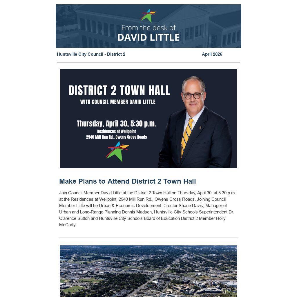 April 30: District 2 Town Hall, 5:30 p.m., Residences at Wellpoint, 2940 Mill Run Rd., Owens Cross Roads