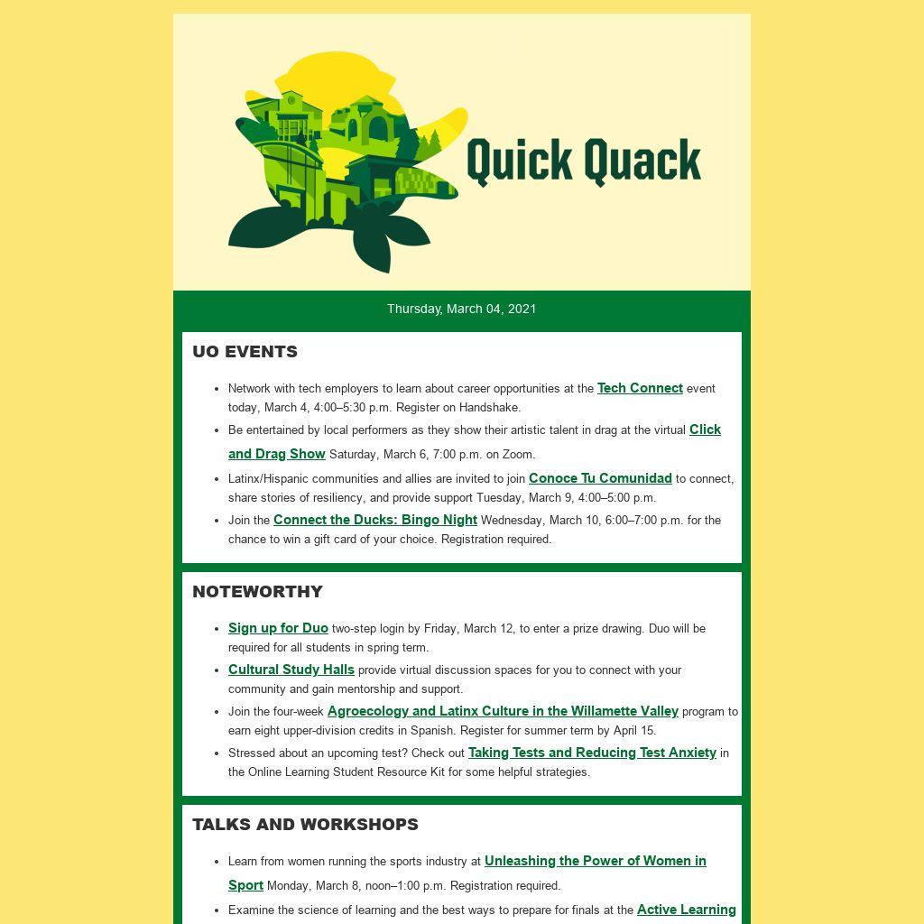Network with tech employers to learn about career opportunities at the Tech Connect event today, March 4, 4:00–5:30 p.m. Register on Handshake.