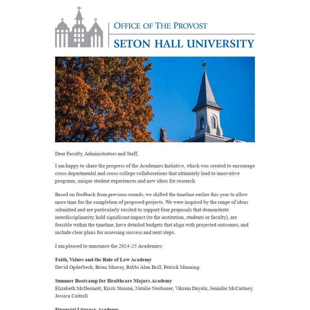 I am happy to share the progress of the Academies Initiative, which was created to encourage cross-departmental and cross-college collaborations that ultimately lead to innovative programs, unique student experiences and new ideas for research.