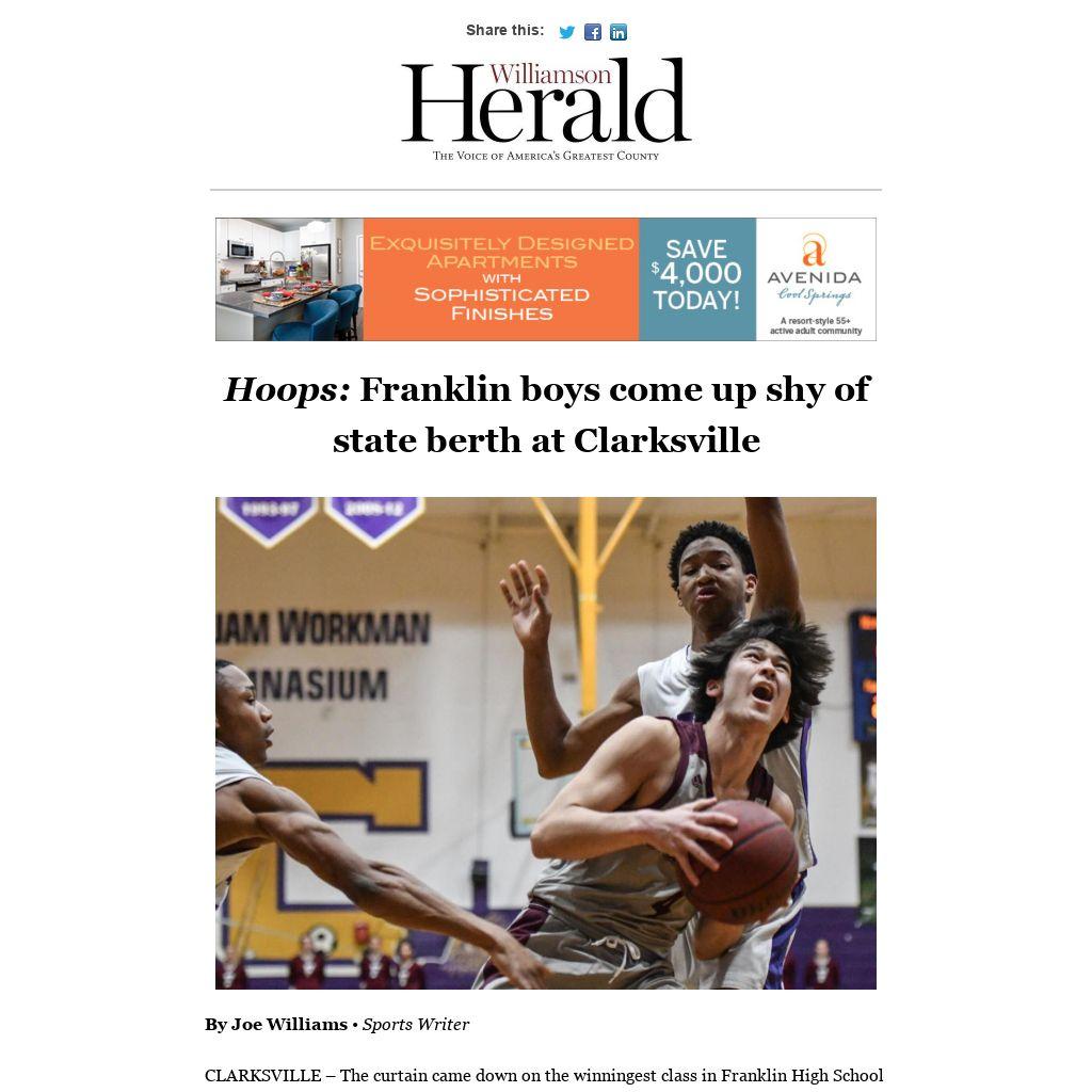 Hoops: Franklin boys come up shy of state berth at Clarksville