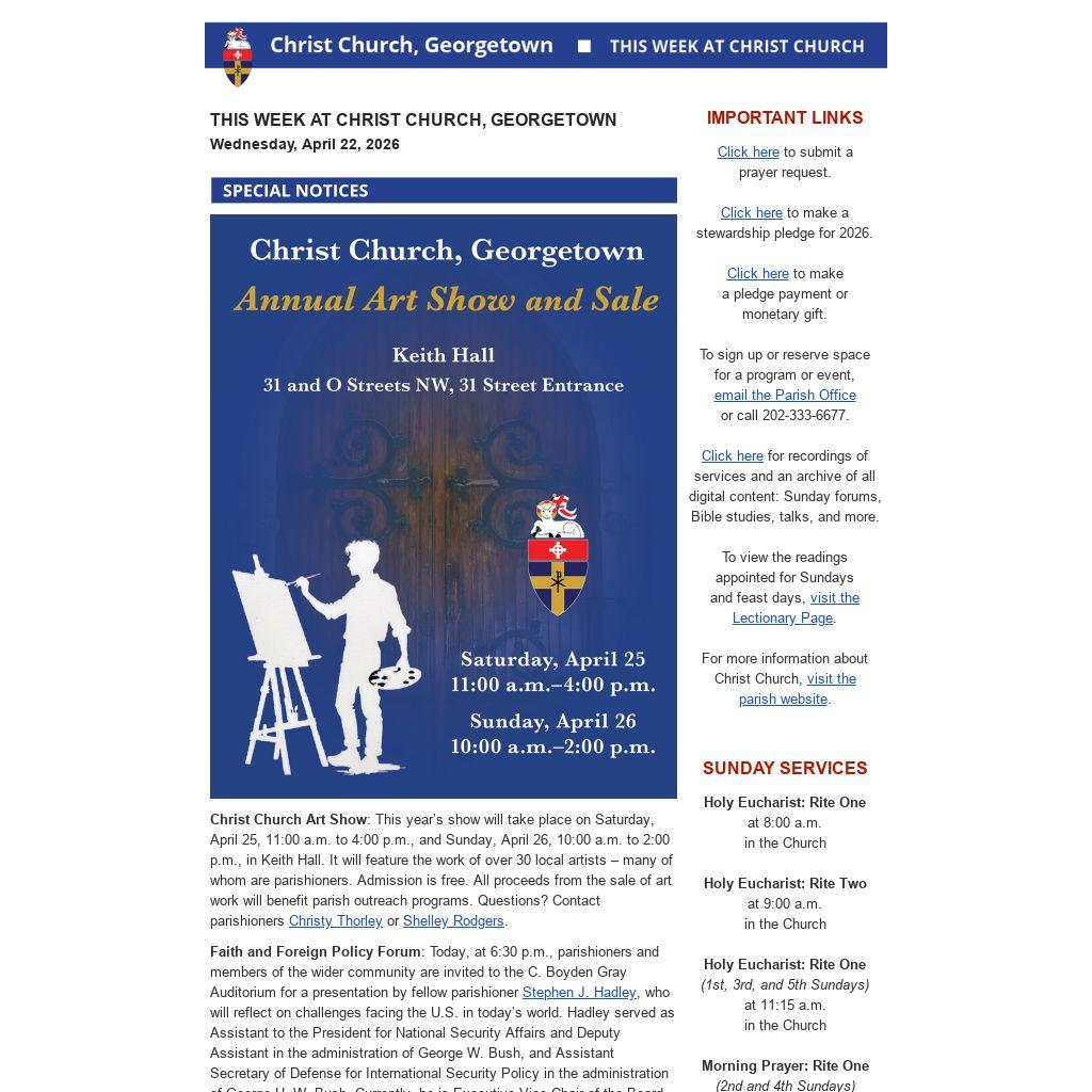 THIS WEEK AT CHRIST CHURCH, GEORGETOWN Wednesday, April 22, 2026