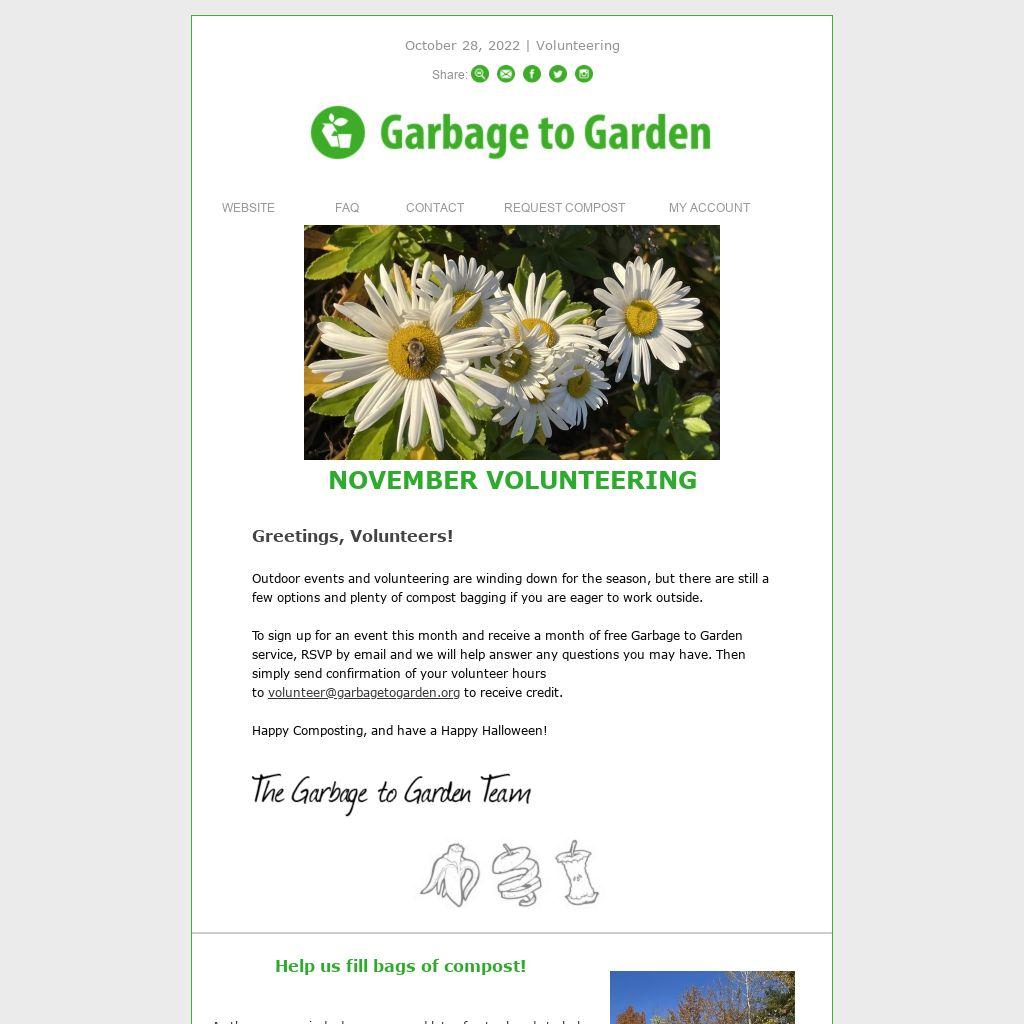 As the season winds down, we need lots of extra hands to help fill bags of compost to keep up with demand.