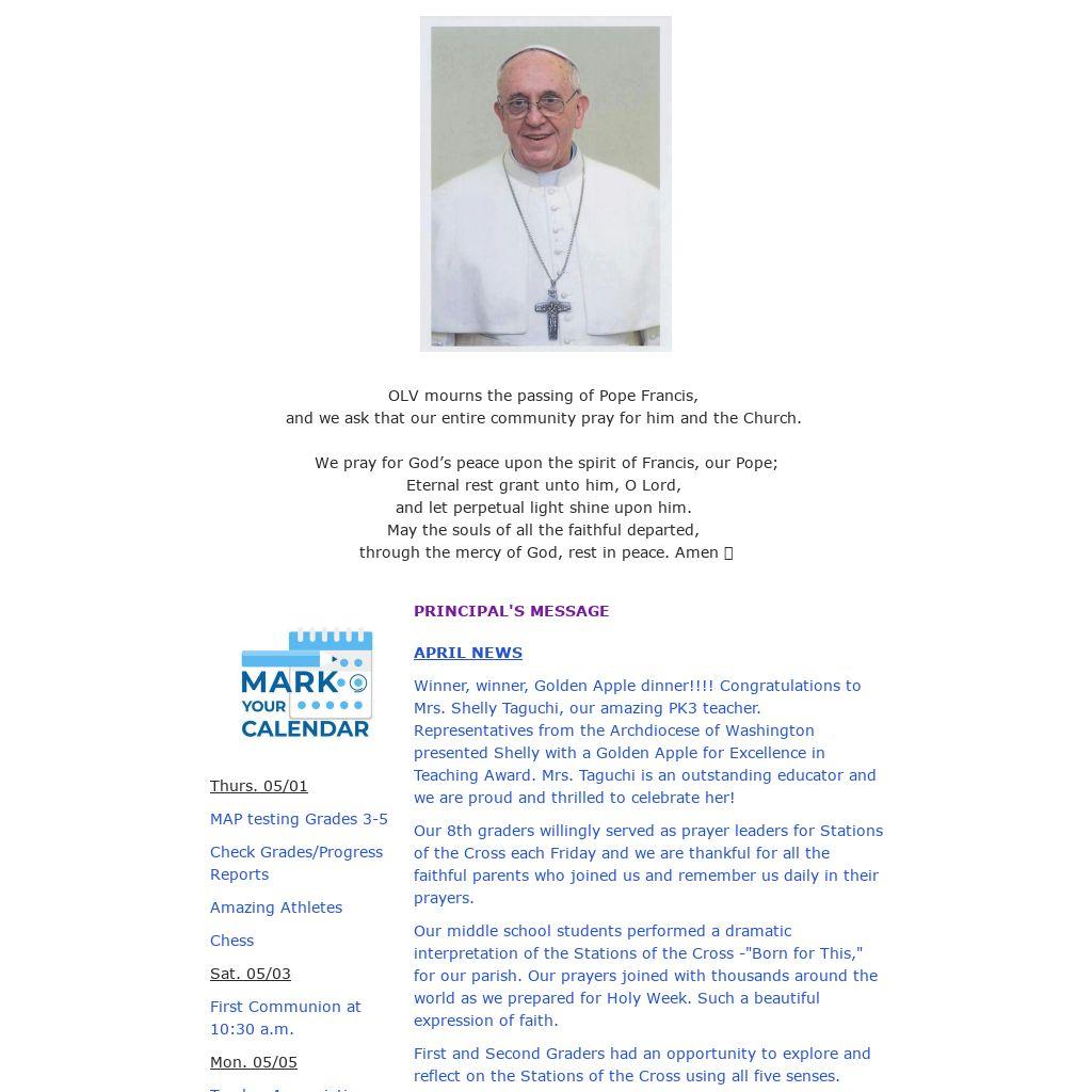 Our 8th graders willingly served as prayer leaders for Stations of the Cross each Friday and we are thankful for all the faithful parents who joined us and remember us daily in their prayers.