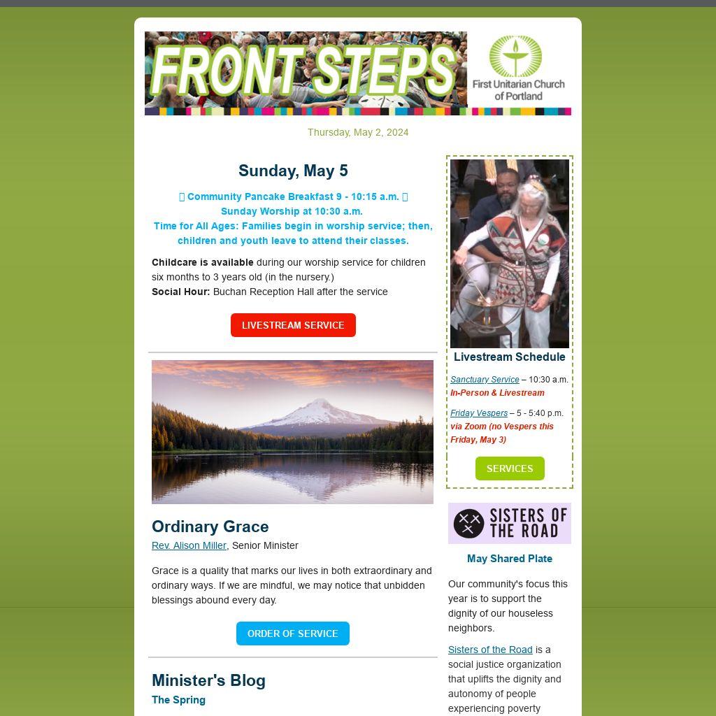 Got something for Front Steps? Send in your church-related submission for our weekly publication. Use "Front Steps" as the subject line and submit here. Deadline: Tuesdays at noon.