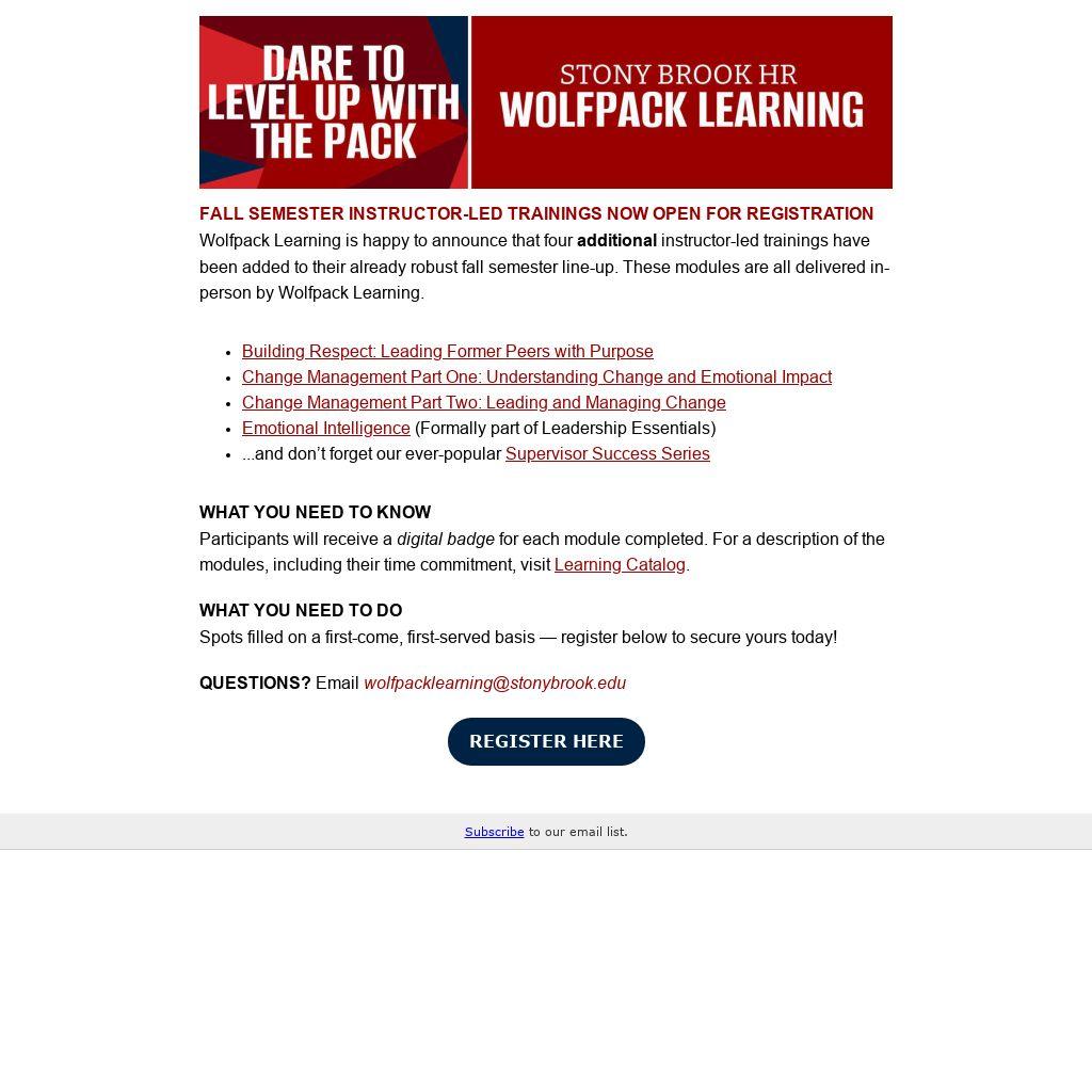 Wolfpack Learning is happy to announce that four additional instructor-led trainings have been added to their already robust fall semester line-up. These modules are all delivered in-person by Wolfpack Learning.