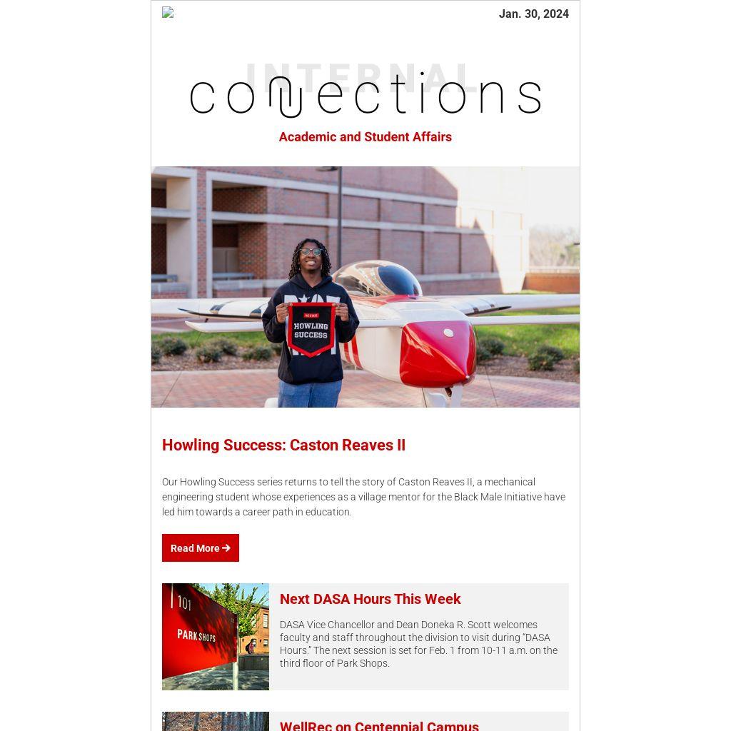 - Reminder: Starting Feb. 5, Wolf Walks, Wellness and Recreation’s annual DASA walking challenge, is back again for yet another year! Register here.