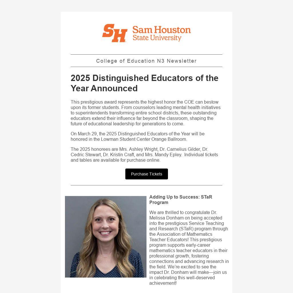 We are thrilled to congratulate Dr. Melissa Donham on being accepted into the prestigious Service Teaching and Research (STaR) program through the Association of Mathematics Teacher Educators! This prestigious program supports early-career mathematics teacher educators in their professional growth, fostering connections and advancing research in the field. We’re excited to see the impact Dr. Donham will make—join us in celebrating this well-deserved achievement!