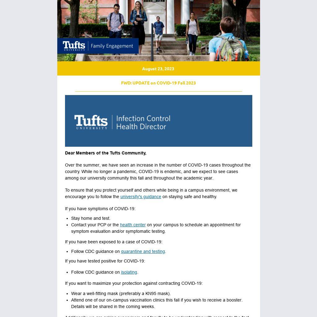 Over the summer, we have seen an increase in the number of COVID-19 cases throughout the country. While no longer a pandemic, COVID-19 is endemic, and we expect to see cases among our university community this fall and throughout the academic year.