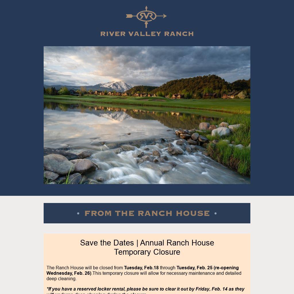 The Ranch House will be closed from Tuesday, Feb.18 through Tuesday, Feb. 25 (re-opening Wednesday, Feb. 26).This temporary closure will allow for necessary maintenance and detailed deep cleaning.