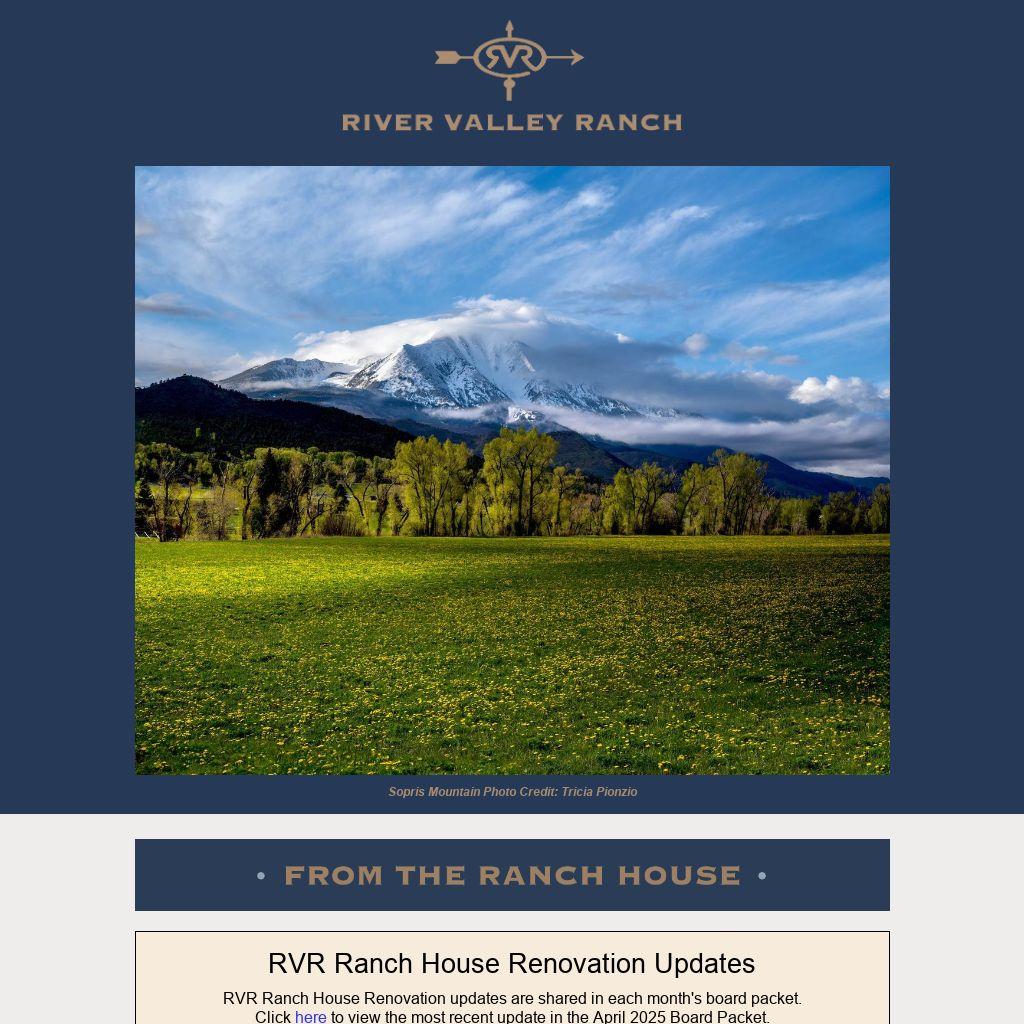 RVR Ranch House Renovation updates are shared in each month's board packet.