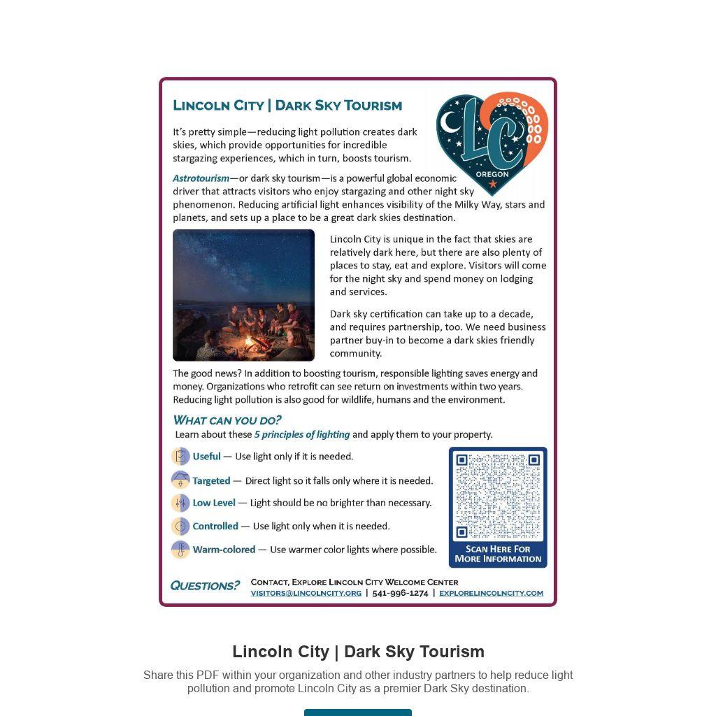 Share this PDF within your organization and other industry partners to help reduce light pollution and promote Lincoln City as a premier Dark Sky destination.