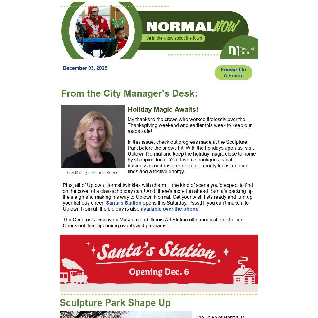 Plus, all of Uptown Normal twinkles with charm ... the kind of scene you’d expect to find on the cover of a classic holiday card! And, there's more fun ahead. Santa’s packing up the sleigh and making his way to Uptown Normal. Get your wish lists ready and turn up your holiday cheer! Santa's Station opens this Saturday. Pssst! If you can't make it to Uptown Normal, the big guy is also available over the phone!