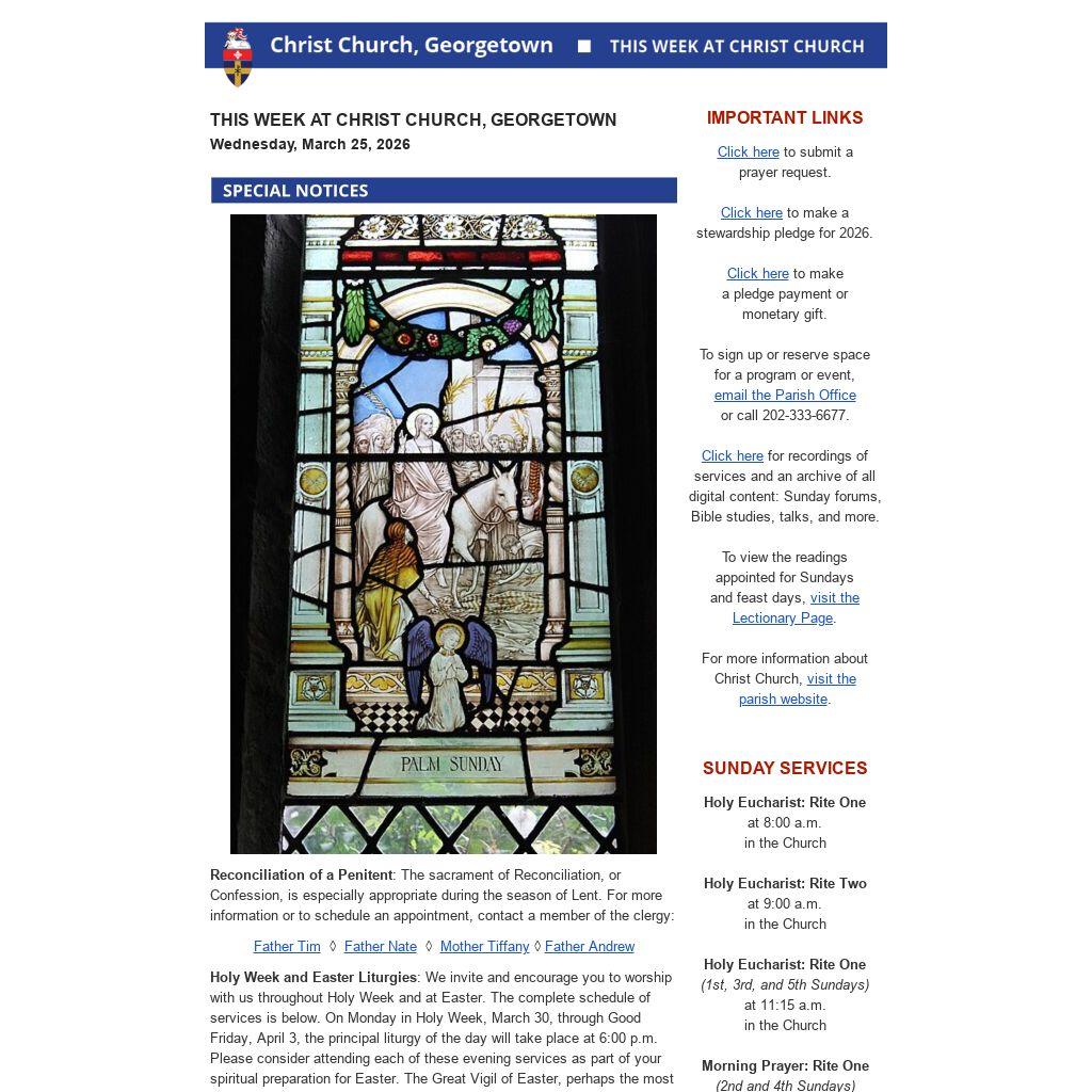 THIS WEEK AT CHRIST CHURCH, GEORGETOWN