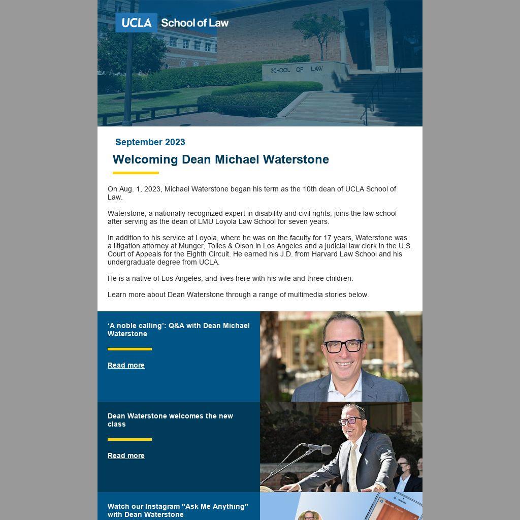 On Aug. 1, 2023, Michael Waterstone began his term as the 10th dean of UCLA School of Law.