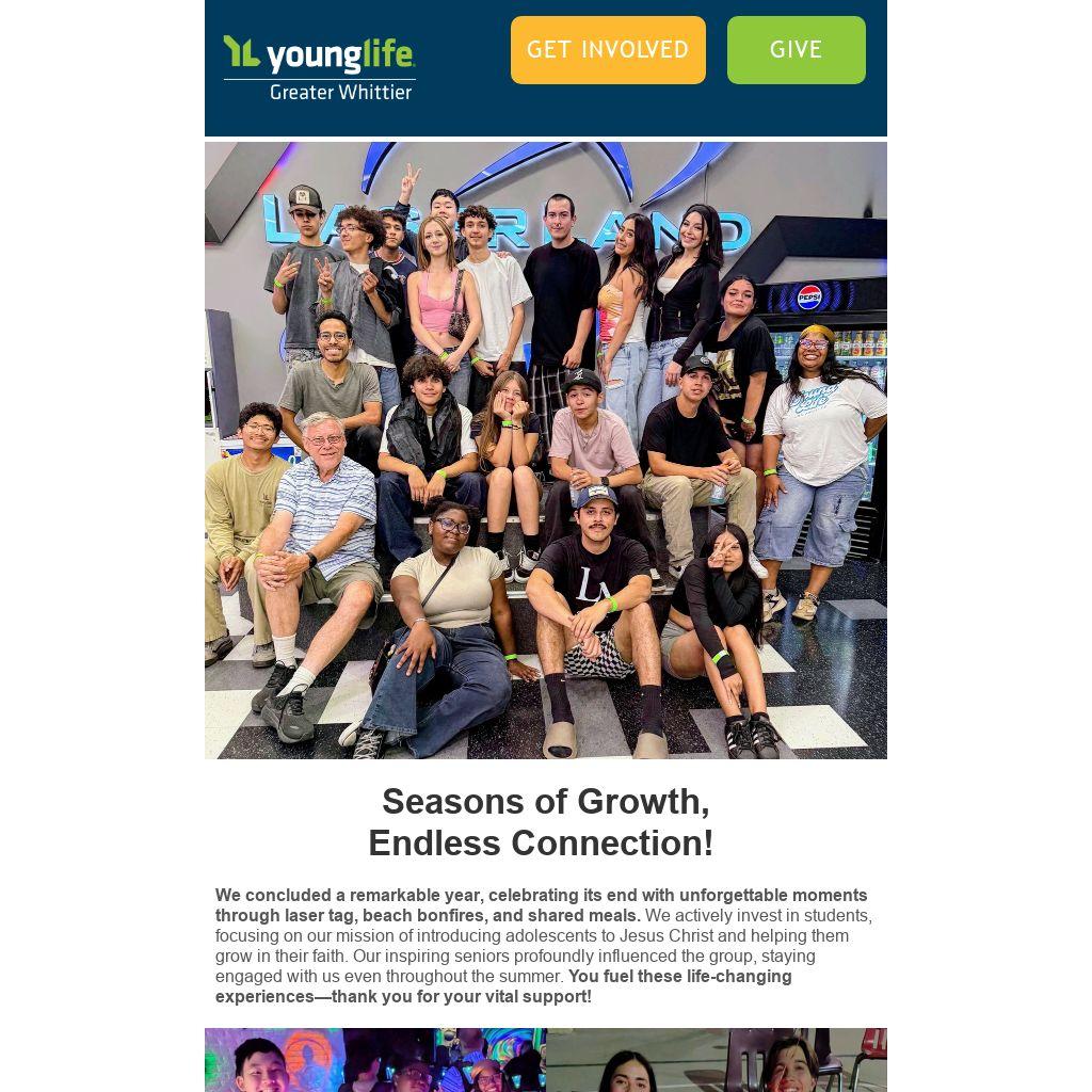 We concluded a remarkable year, celebrating its end with unforgettable moments through laser tag, beach bonfires, and shared meals. We actively invest in students, focusing on our mission of introducing adolescents to Jesus Christ and helping them grow in their faith. Our inspiring seniors profoundly influenced the group, staying engaged with us even throughout the summer. You fuel these life-changing experiences—thank you for your vital support!