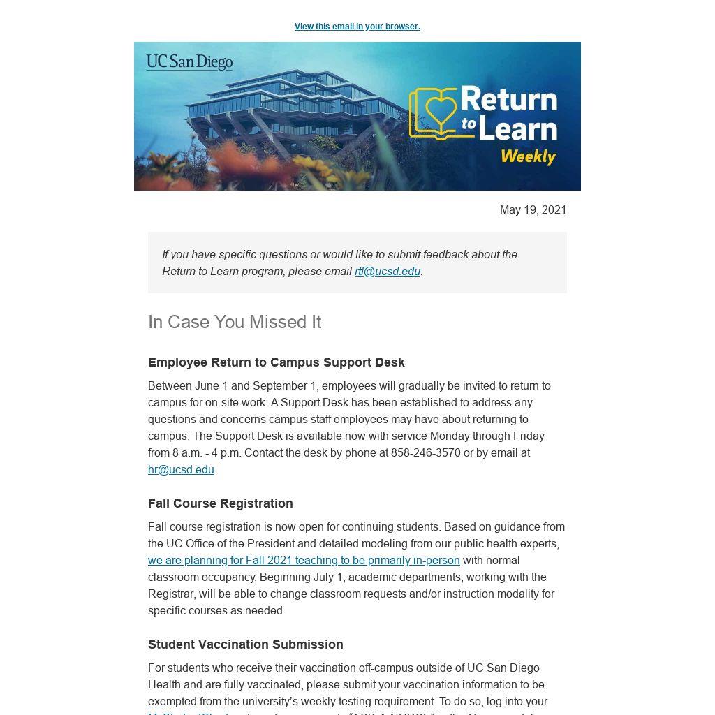 Question: Will UC San Diego require students to be fully vaccinated in Fall 2021?