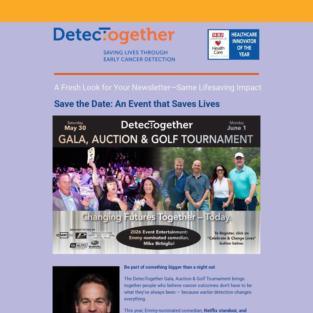 The DetecTogether Gala, Auction & Golf Tournament brings together people who believe cancer outcomes don't have to be what they've always been — because earlier detection changes everything.