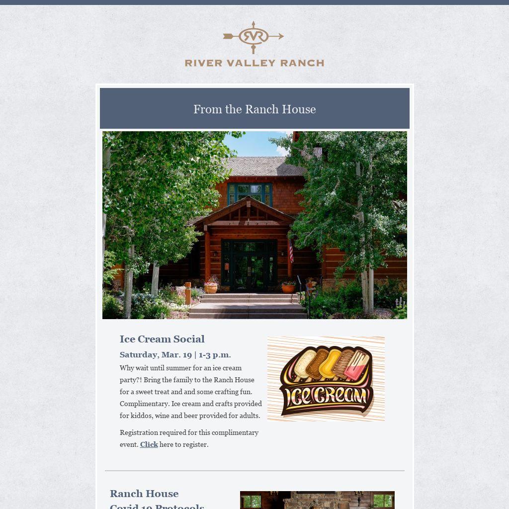 Ice Cream Social Saturday, Mar. 19 | 1-3 p.m. Why wait until summer for an ice cream party?! Bring the family to the Ranch House for a sweet treat and and some crafting fun. Complimentary. Ice cream and crafts provided for kiddos, wine and beer provided for adults.