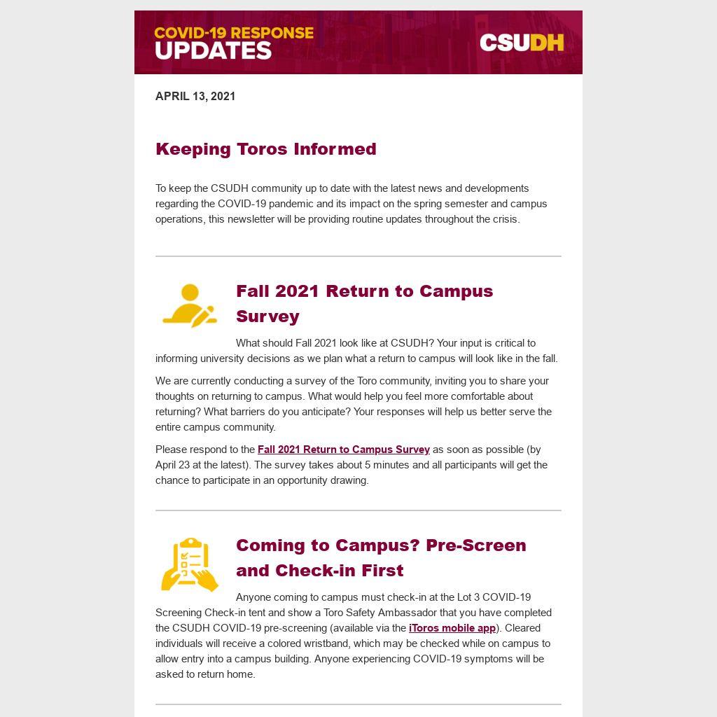 Please note: individuals who receive the COVID-19 vaccine and experience side effects within 24 to 48 hours do not need to call the CSUDH COVID-19 Hotline to report symptoms.