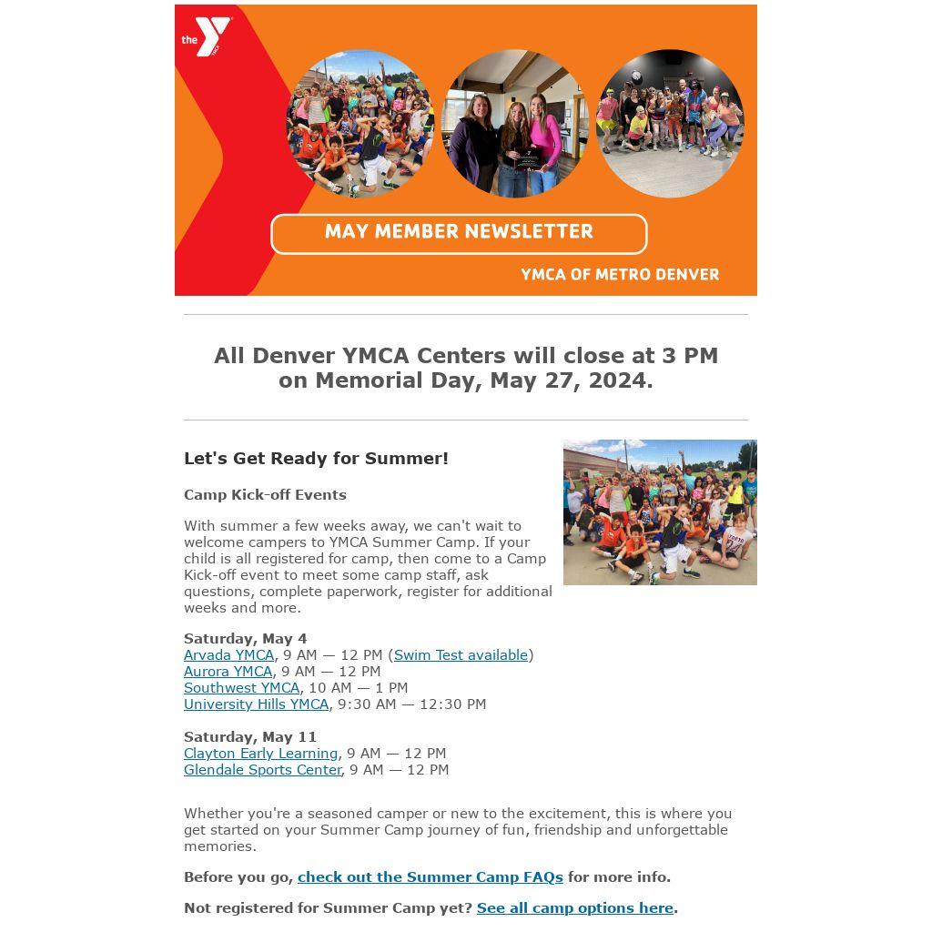 With summer a few weeks away, we can't wait to welcome campers to YMCA Summer Camp. If your child is all registered for camp, then come to a Camp Kick-off event to meet some camp staff, ask questions, complete paperwork, register for additional weeks and more.Â