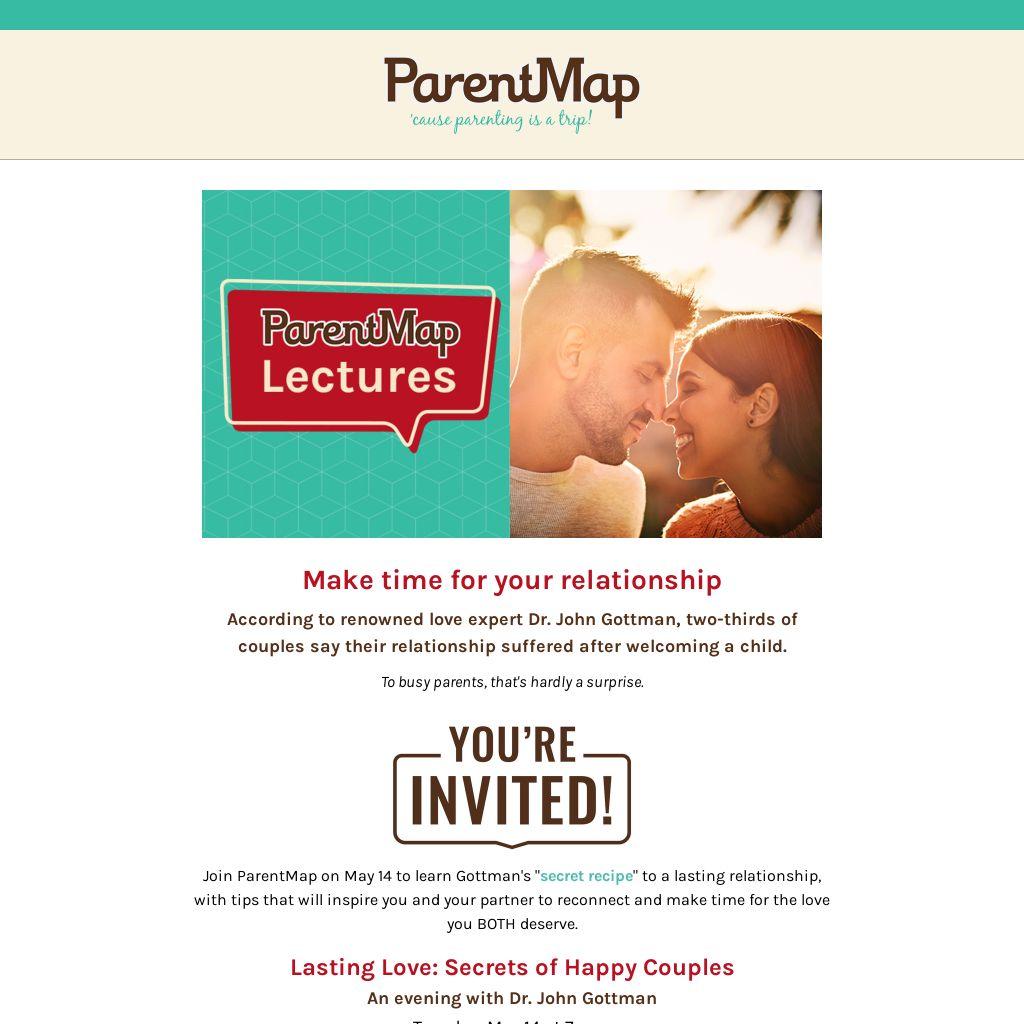 Join ParentMap on May 14 to learn Gottman's "secret recipe" to a lasting relationship, with tips that will inspire you and your partner to reconnect and make time for the love you BOTH deserve.