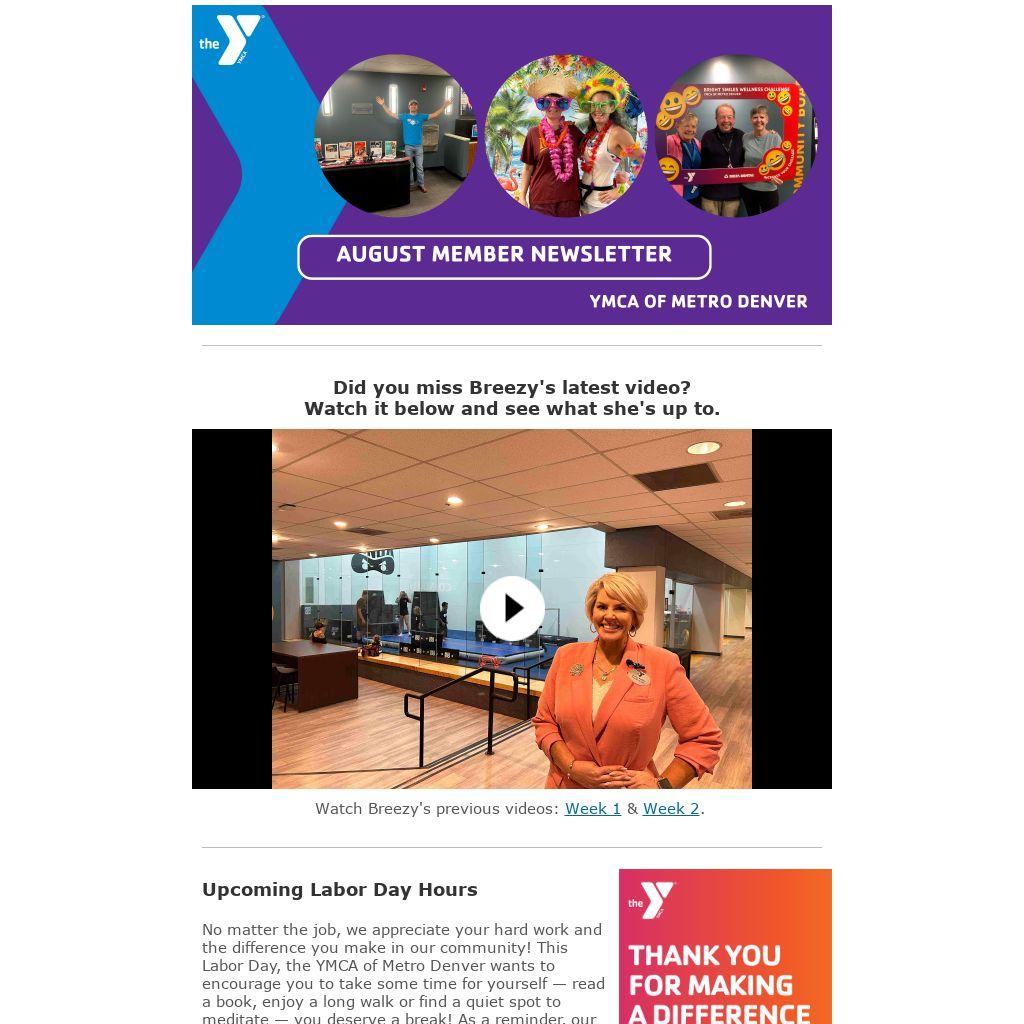 We want to provide an update that we anticipate the Downtown Denver YMCA will remain closed until early September.