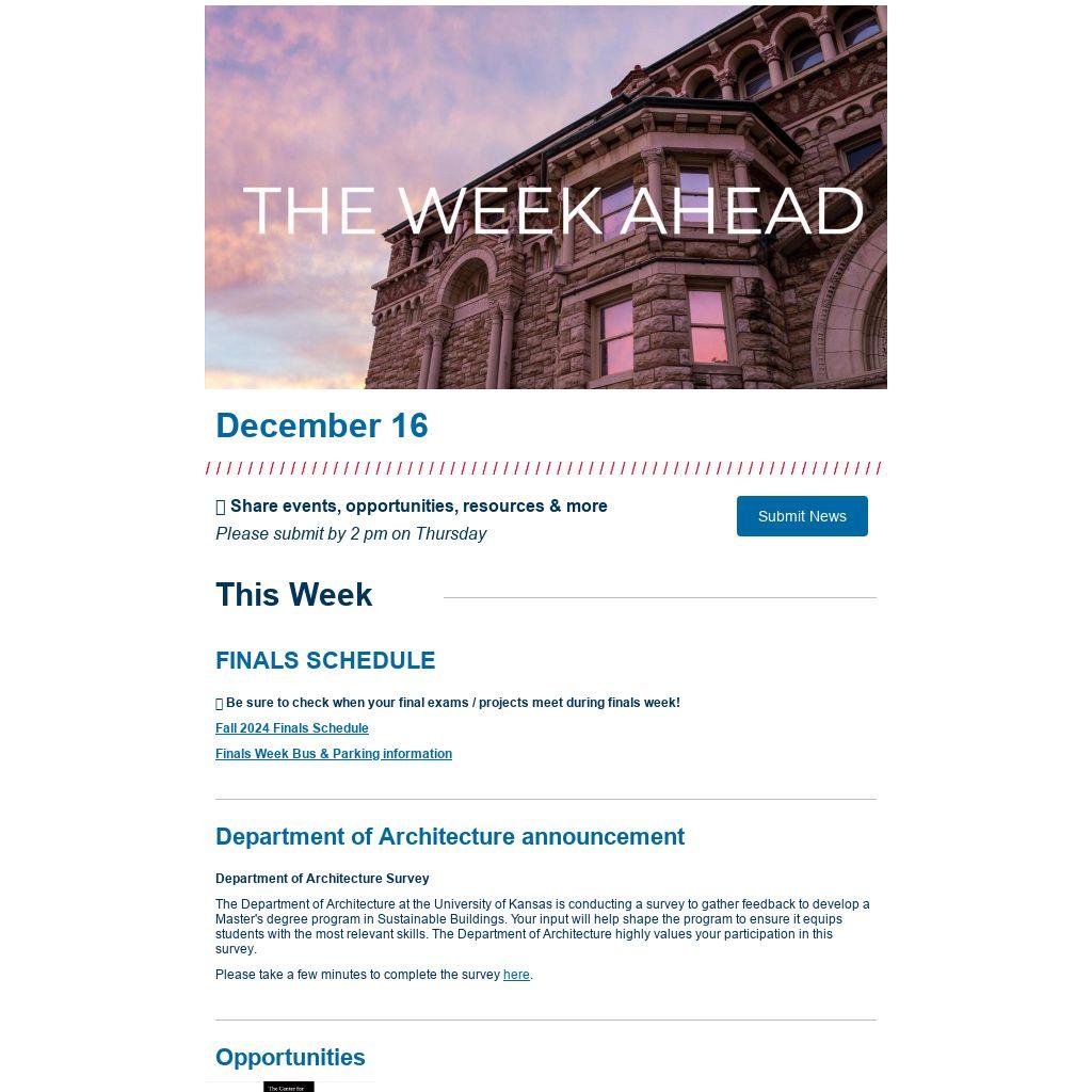 The Department of Architecture at the University of Kansas is conducting a survey to gather feedback to develop a Master's degree program in Sustainable Buildings. Your input will help shape the program to ensure it equips students with the most relevant skills. The Department of Architecture highly values your participation in this survey.