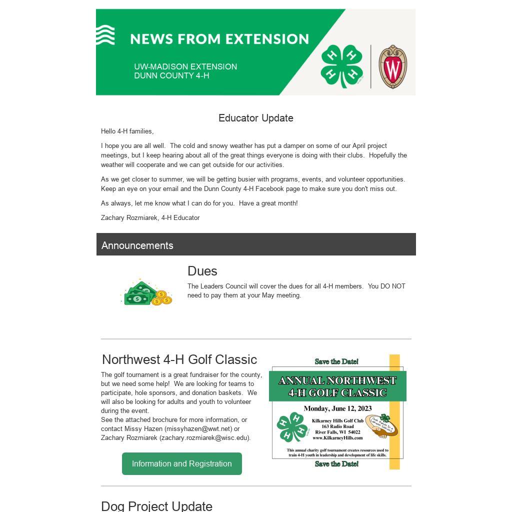 As we get closer to summer, we will be getting busier with programs, events, and volunteer opportunities. Keep an eye on your email and the Dunn County 4-H Facebook page to make sure you don't miss out.