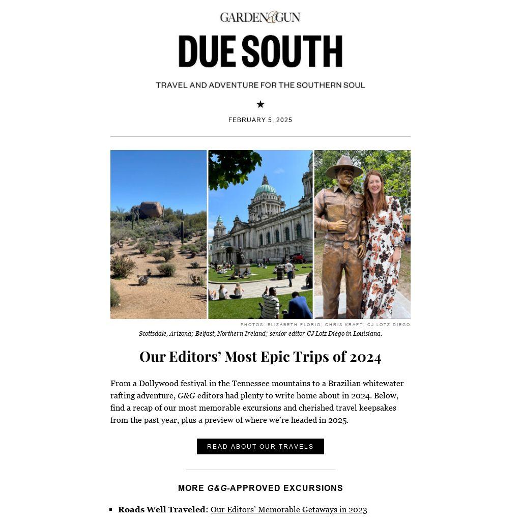 From a Dollywood festival in the Tennessee mountains to a Brazilian whitewater rafting adventure, G&G editors had plenty to write home about in 2024. Below, find a recap of our most memorable excursions and cherished travel keepsakes from the past year, plus a preview of where we’re headed in 2025.