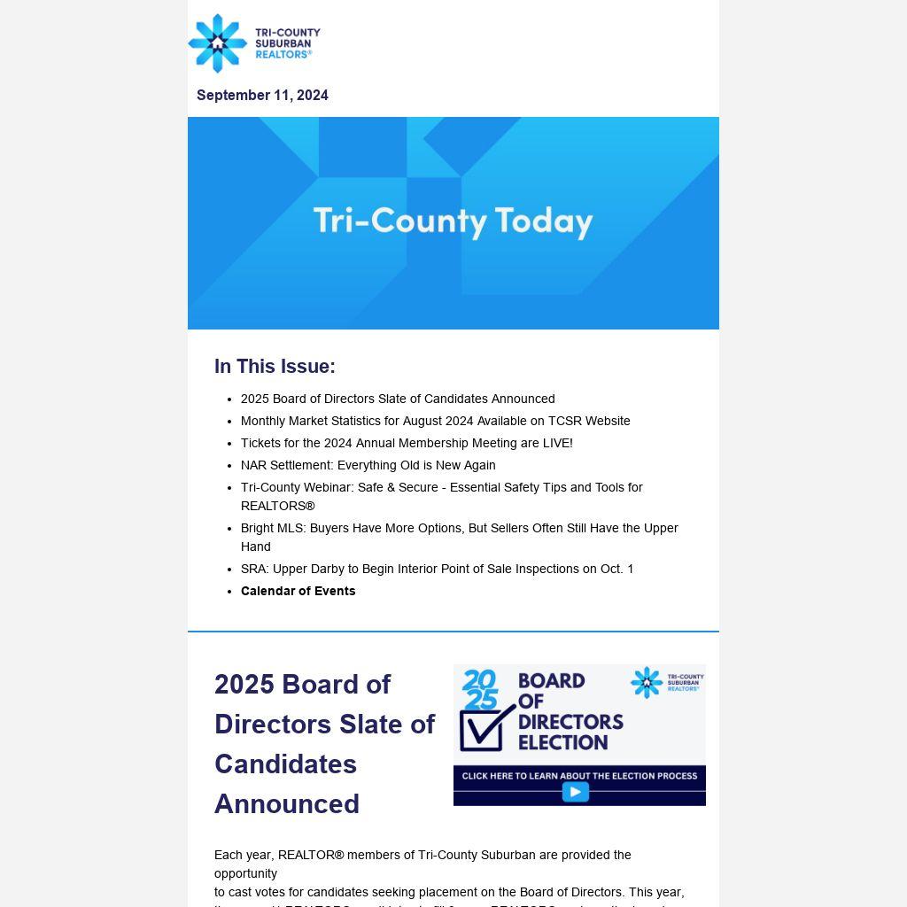 - The last chance to vote for the 2025 Tri-County Suburban REALTORS® Board of Directors candidates