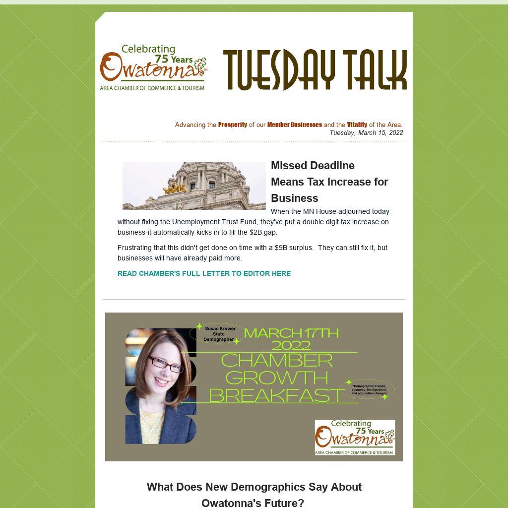 For a sneak peak, learn more on new developments, chamber Ambassadors celebrating 50 years, business spotlight on Viracon, chamber events and new members.