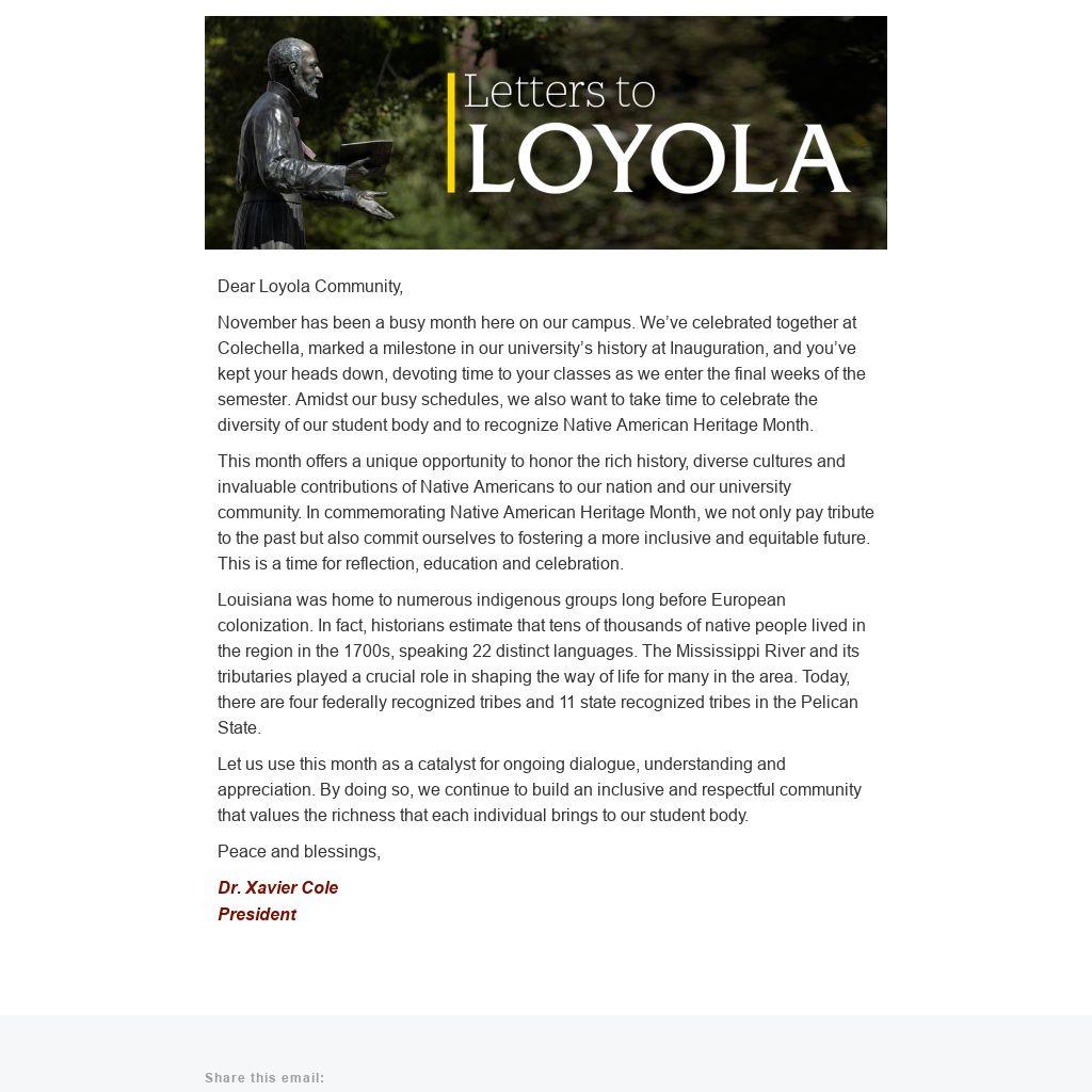 This month offers a unique opportunity to honor the rich history, diverse cultures and invaluable contributions of Native Americans to our nation and our university community. In commemorating Native American Heritage Month, we not only pay tribute to the past but also commit ourselves to fostering a more inclusive and equitable future. This is a time for reflection, education and celebration.