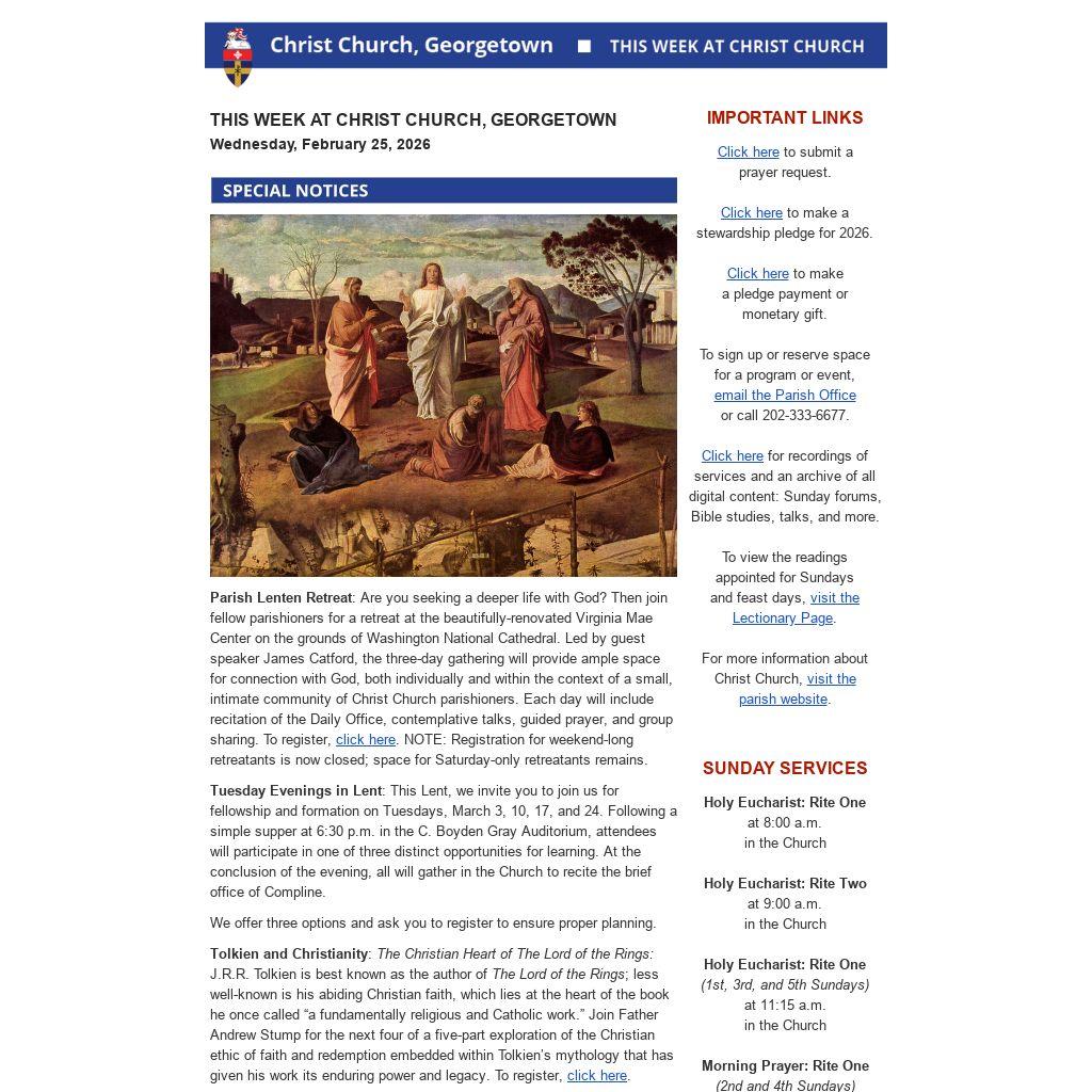 THIS WEEK AT CHRIST CHURCH, GEORGETOWN Wednesday, February 25, 2026
