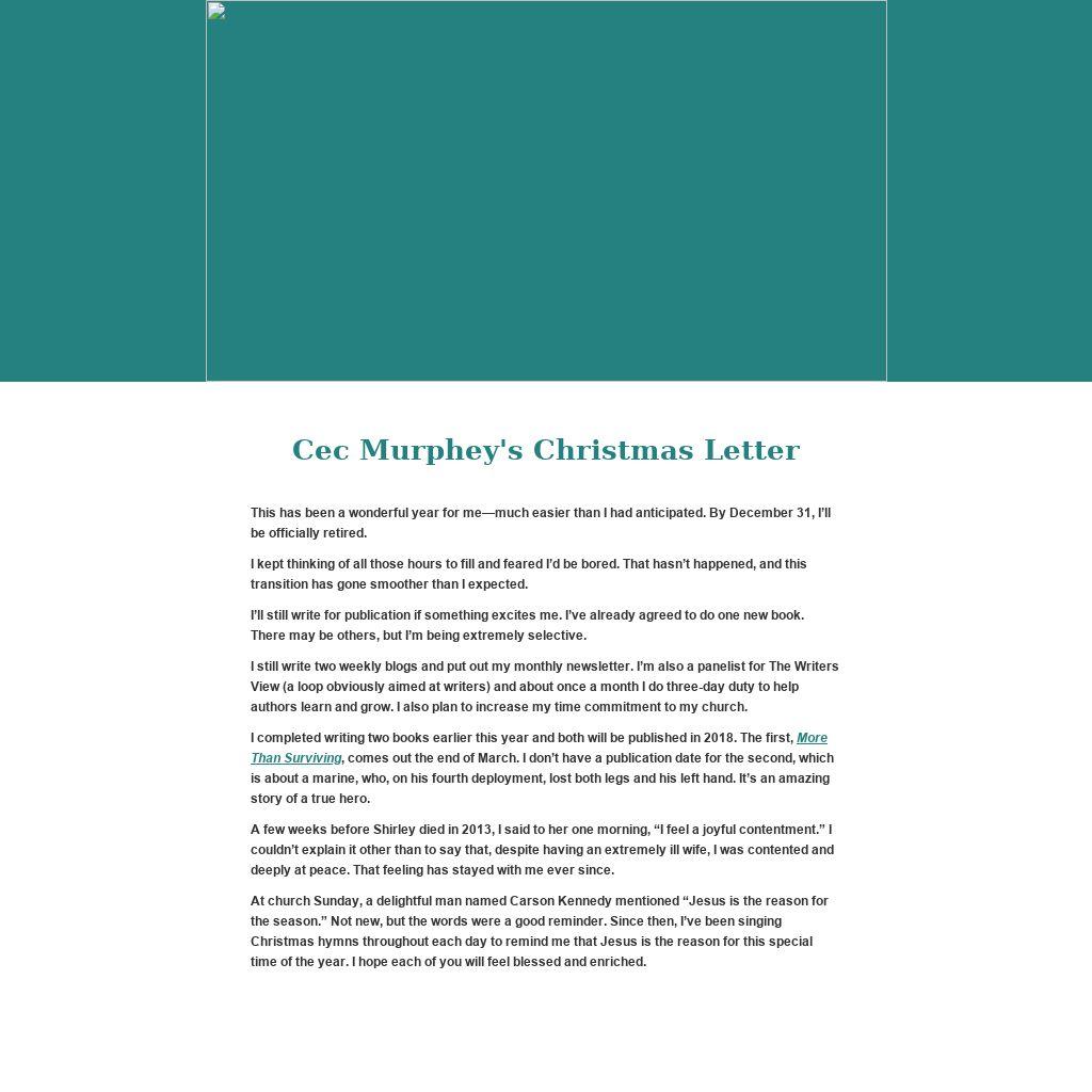 I completed writing two books earlier this year and both will be published in 2018. The first, More Than Surviving, comes out the end of March. I don’t have a publication date for the second, which is about a marine, who, on his fourth deployment, lost both legs and his left hand. It’s an amazing story of a true hero.