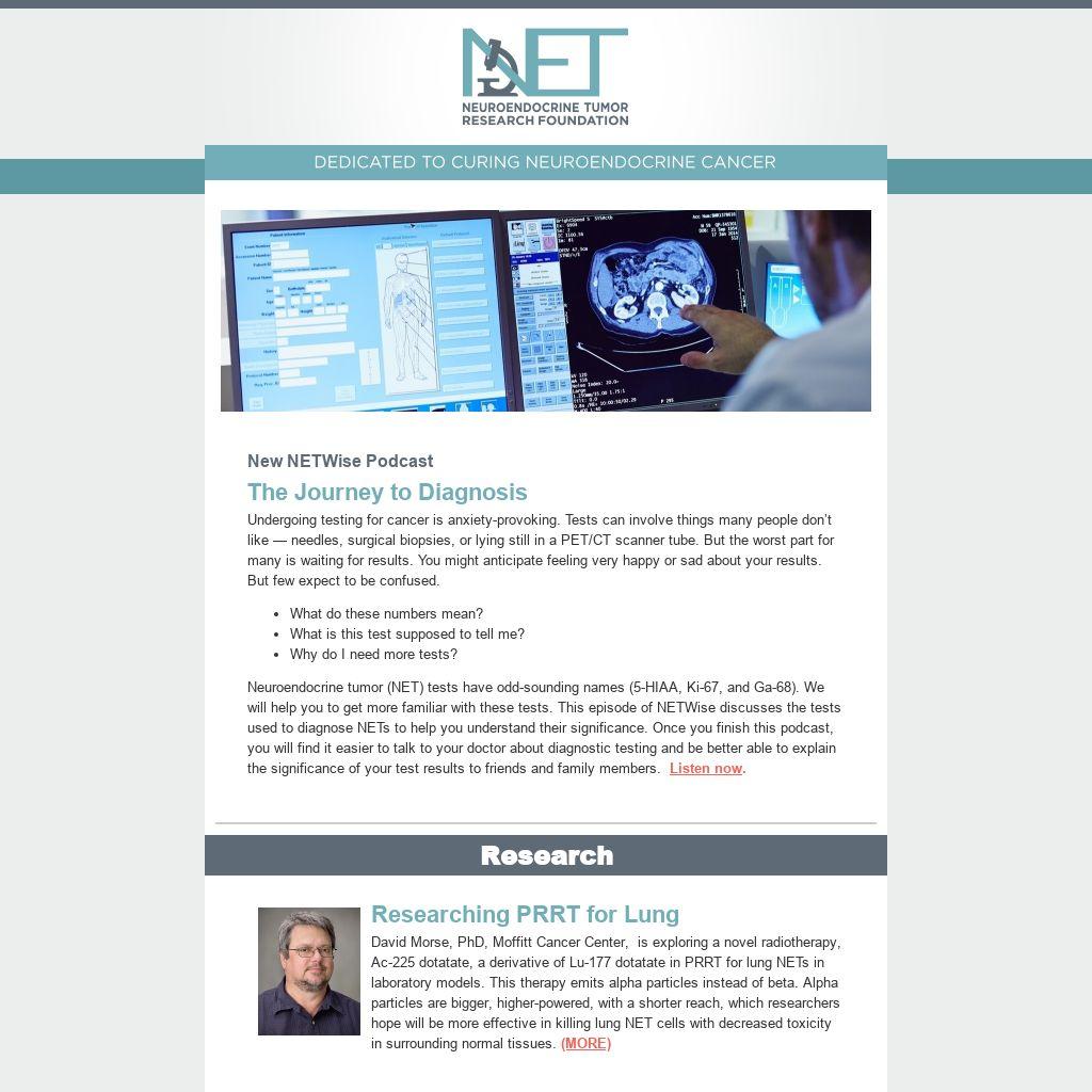 Neuroendocrine tumor (NET) tests have odd-sounding names (5-HIAA, Ki-67, and Ga-68). We will help you to get more familiar with these tests. This episode of NETWise discusses the tests used to diagnose NETs to help you understand their significance. Once you finish this podcast, you will find it easier to talk to your doctor about diagnostic testing and be better able to explain the significance of your test results to friends and family members.