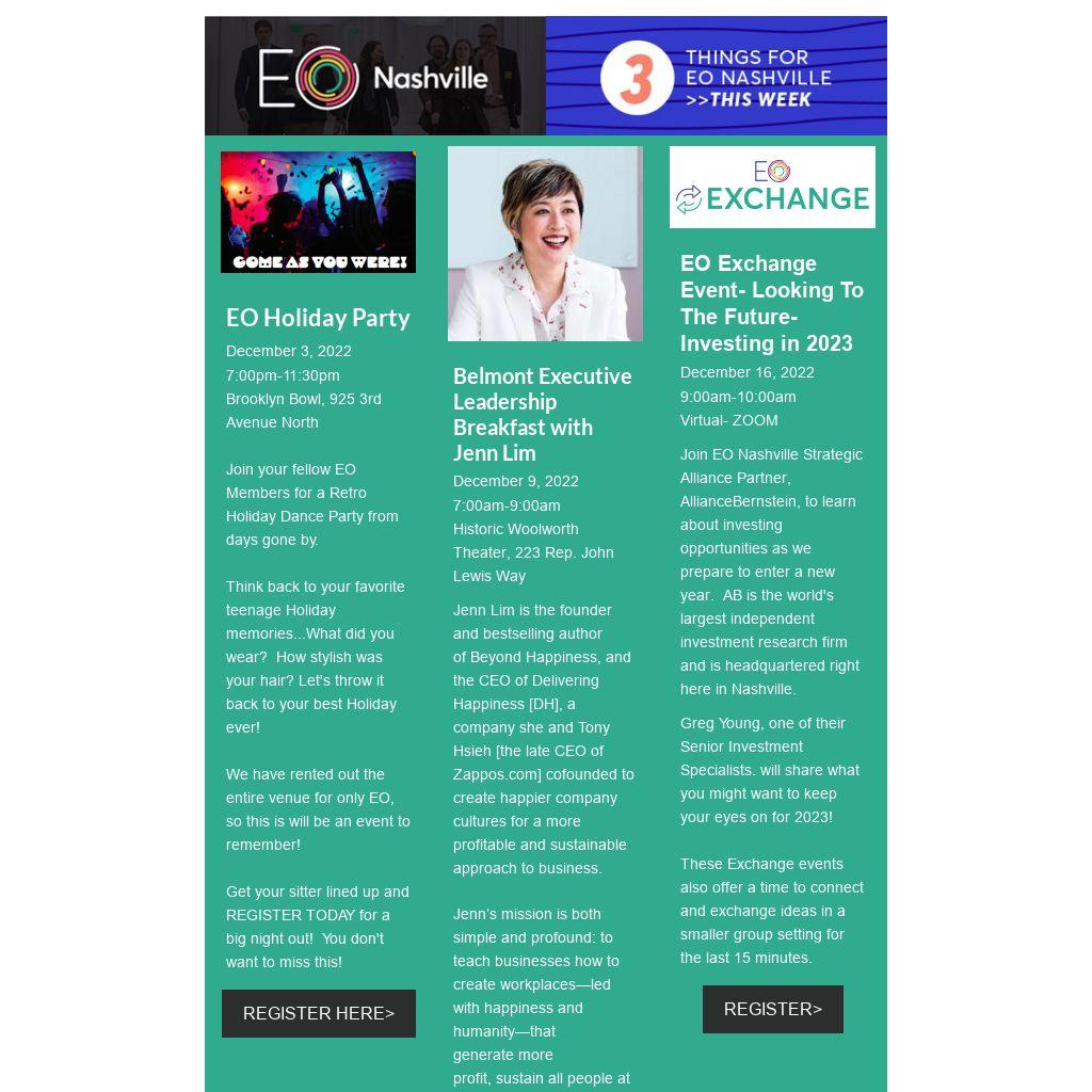 I’m looking forward to our Christmas party, the GLC in Cape Town and the MyEO Women’s conference in Marrakech next summer!