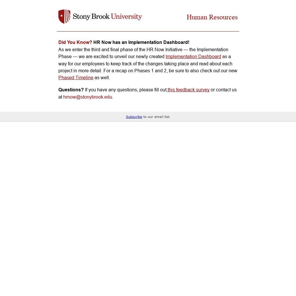 Questions? If you have any questions, please fill out this feedback survey or contact us at hrnow@stonybrook.edu.