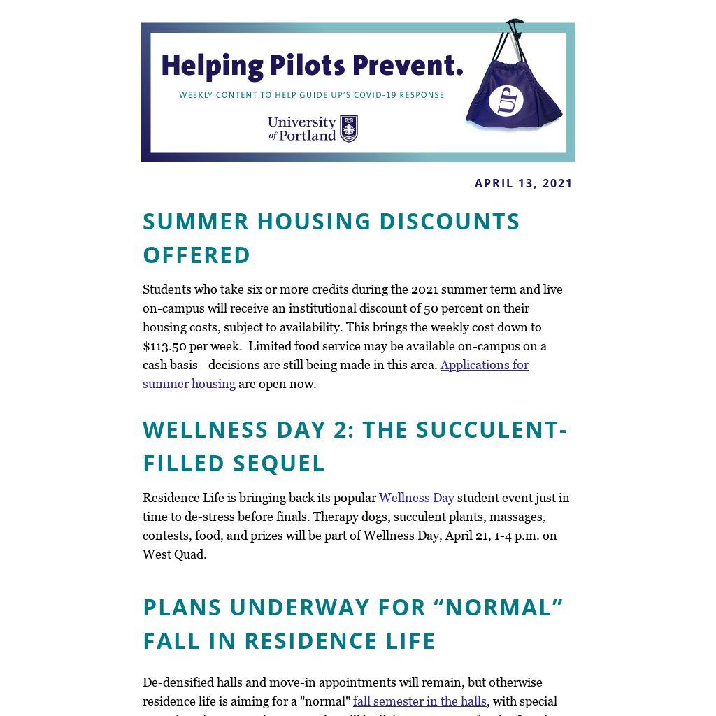 Helping Pilots Prevent Weekly Content to Help Guide UP's COVID-19 Response