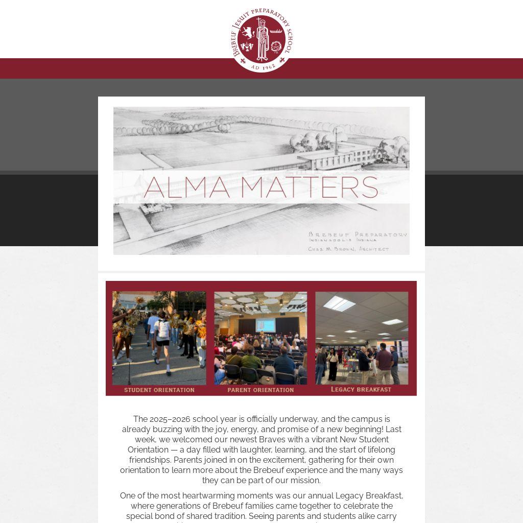 As we step into this school year, we invite you — alumni, parents, students, and friends — to find ways to engage, give back, and grow with us. Whether it’s attending events, volunteering your time or mentoring the next generation of Braves, your presence and participation make Brebeuf the vibrant, faith-filled, and inclusive community we cherish.