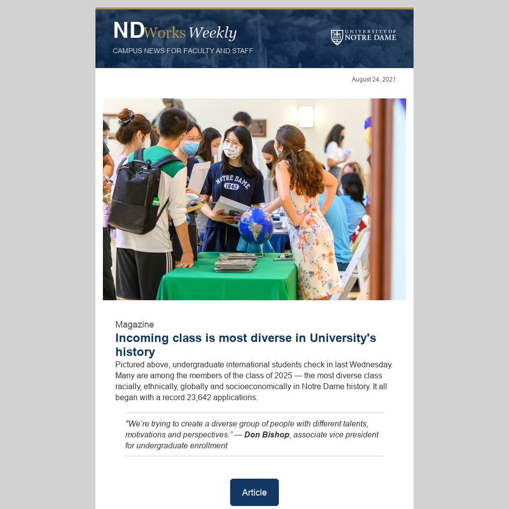 Pictured above, undergraduate international students check in last Wednesday. Many are among the members of the class of 2025 — the most diverse class racially, ethnically, globally and socioeconomically in Notre Dame history. It all began with a record 23,642 applications.