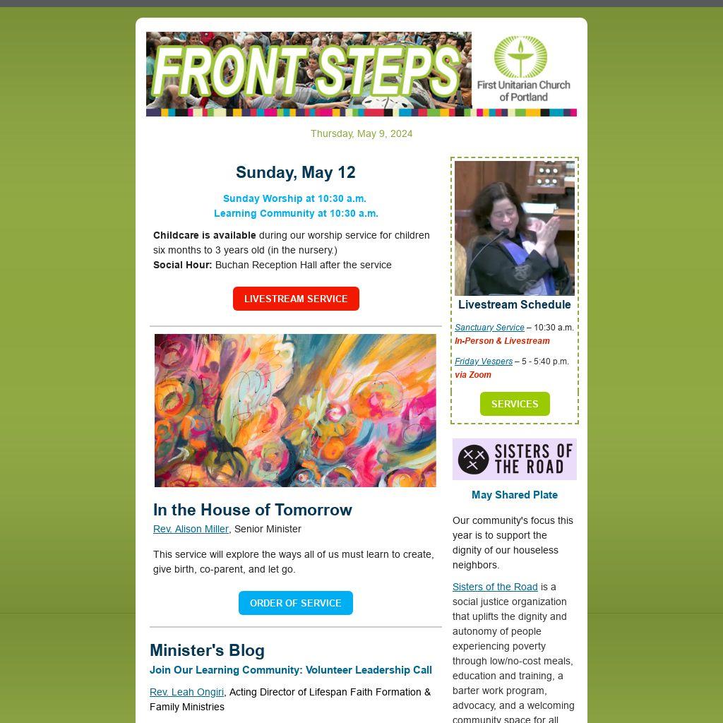 Got something for Front Steps? Send in your church-related submission for our weekly publication. Use "Front Steps" as the subject line and submit here. Deadline: Tuesdays at noon.