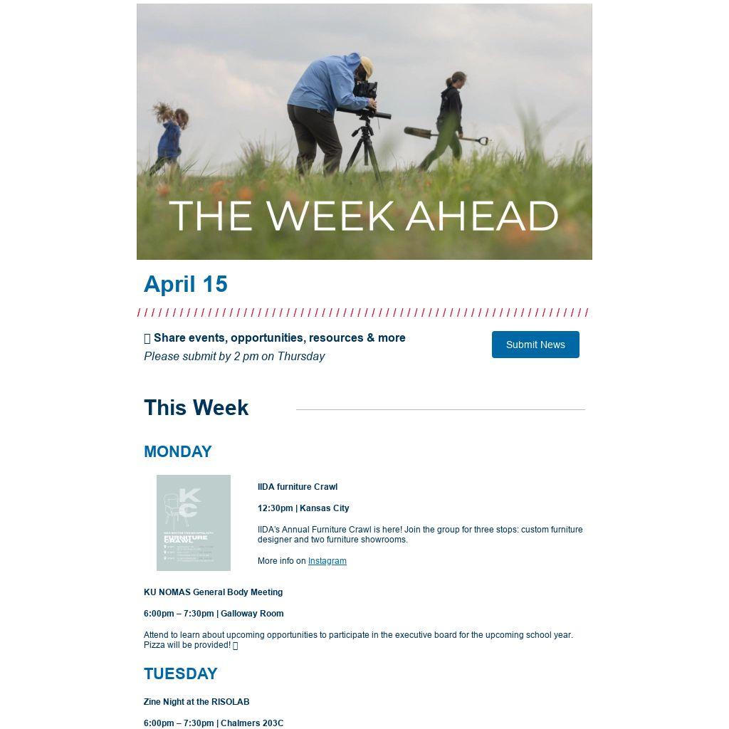 The open house, sponsored by Apex Engineers and BRR Architecture, will be held in parallel with the KU ArcD Showcase at Mammoth. Beginning at 3:30-4:00, there will be an independent urban design study presentation by Alex Lamoureax. From 4:00-5:15, there will be individual urban design project student presentations. The event will end with an open house from 5:15-7:00 with food and drink.Â