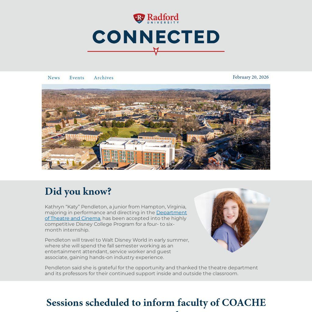 Radford University faculty are invited to presentation sessions on the COACHE (Collaborative on Academic Careers in Higher Education) survey results. The survey captures faculty opinions on teaching, service, research, promotion and tenure, departmental engagement and collegiality and other aspects of the academic workplace at Radford University. Faculty completed the survey in spring 2025, and the results are now complete and ready to be shared.