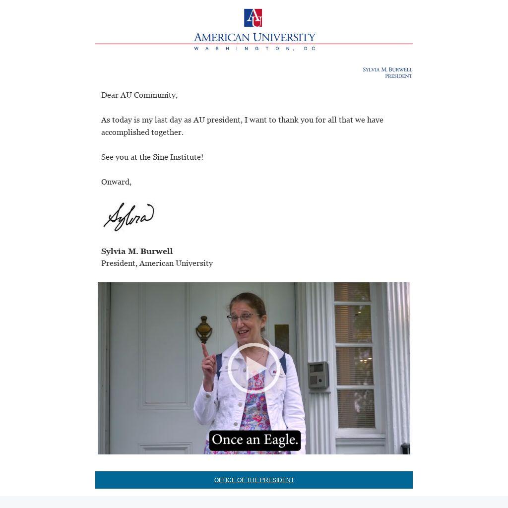 As today is my last day as AU president, I want to thank you for all that we have accomplished together.