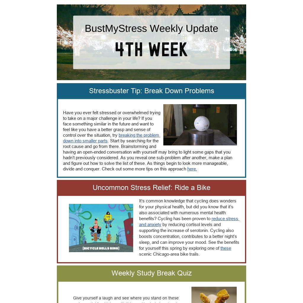 Have you ever felt stressed or overwhelmed trying to take on a major challenge in your life? If you face something similar in the future and want to feel like you have a better grasp and sense of control over the situation, try breaking the problem down into smaller parts. Start by searching for the root cause and go from there. Brainstorming and having an open-ended conversation with yourself may bring to light some gaps that you hadn’t previously considered. As you reveal one sub-problem after another, make a plan and figure out how to solve the list of these. As things begin to look more manageable, divide and conquer. Check out some more tips on this approach here.