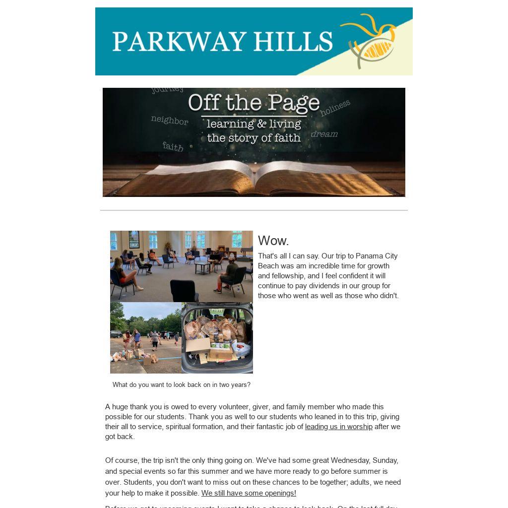 July 17, 5:30-7:30: Sunday Kickback @PHUMC. Light dinner, games, and a student-led devotion for a calmer night in the middle of our students' busy summers.
