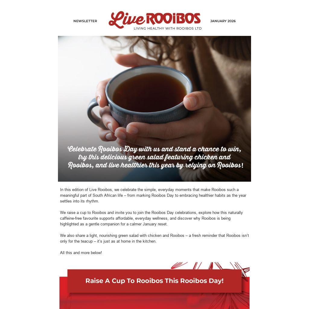 We raise a cup to Rooibos and invite you to join the Rooibos Day celebrations, explore how this naturally caffeine-free favourite supports affordable, everyday wellness, and discover why Rooibos is being highlighted as a gentle companion for a calmer January reset.