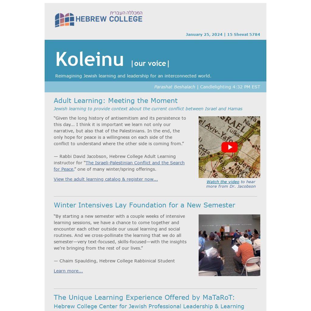 — Rabbi David Jacobson, Hebrew College Adult Learning instructor for “The Israeli-Palestinian Conflict and the Search for Peace,” one of many winter/spring offerings.