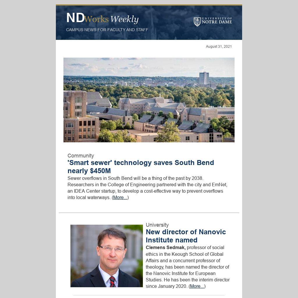 UniversityNew director of Nanovic Institute namedClemens Sedmak, professor of social ethics in the Keough School of Global Affairs and a concurrent professor of theology, has been named the director of the Nanovic Institute for European Studies. He has been the interim director since January 2020. ( More...)